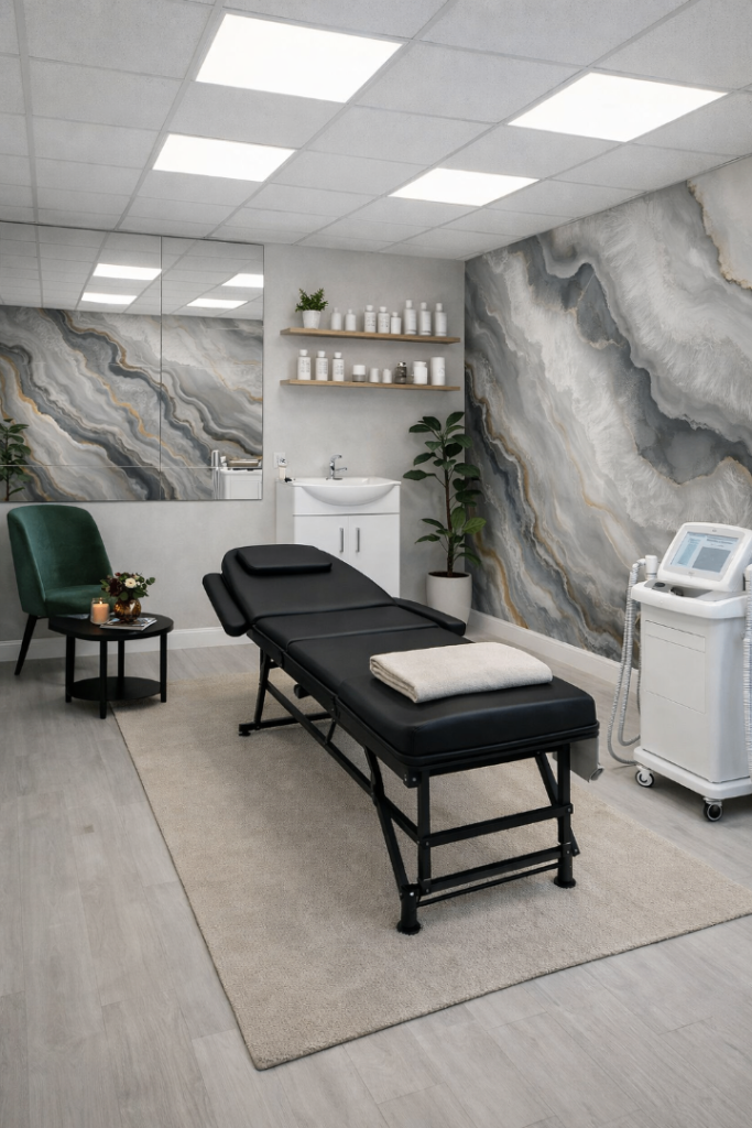 - The result is a space that feels both clinical and inviting, suitable for a wide range of treatments and services.