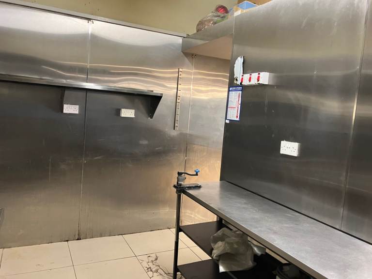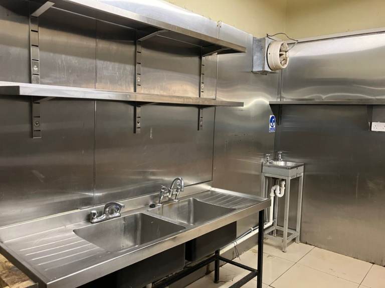 Unit has spacious seating area, inside and takeaway counters, and kitchen clad in stainless steel, with extract canopy. Has 3 phase power and water.