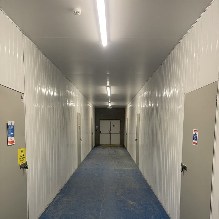 Dimensions: 5.7 meters wide by 13.5 meters long and 5 meters high (70 M2). Perfect for warehouse space or cold storage needs.