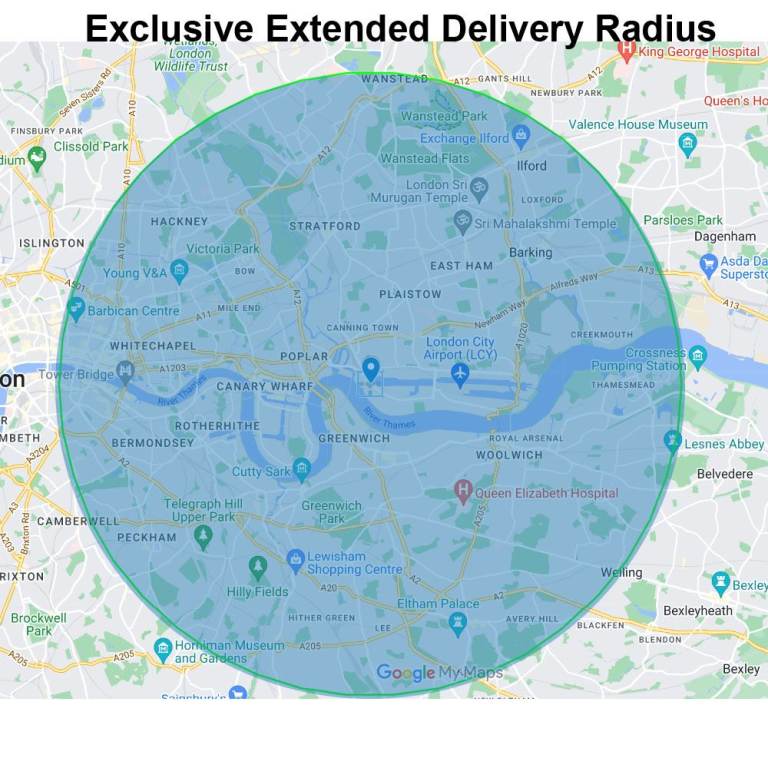 Purpose-built kitchen spaces in the heart of Canary Wharf/ Docklands, with excellent delivery reach to key areas including Canary Wharf, Beckton, Royal Wharf Village, West Silvertown, Canning Town, Mile End, Stratford, and more depending on platforms Deliveroo and Uber Eats.