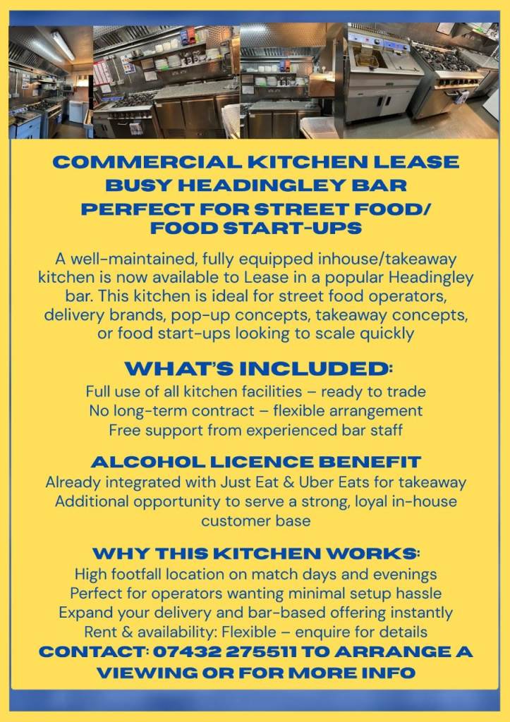 Commercial Kitchen Lease – Busy Headingley Bar, Perfect for Street Food/Food Startups