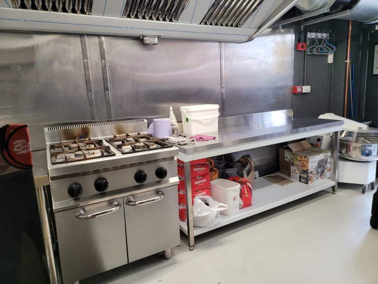 A spacious, bright and fully equipped commercial kitchen available in the Bethnal Green area, just minutes from Shoreditch and close to the City of London.