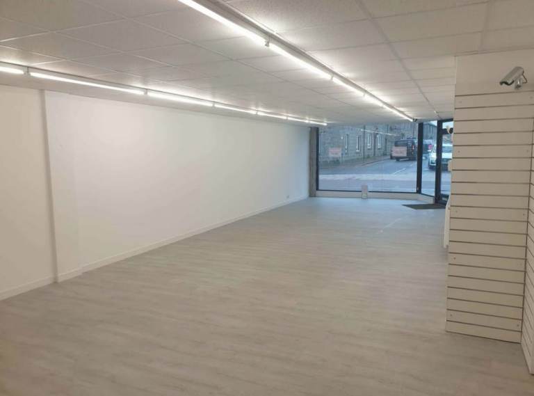 Ground floor spacious shop unit in Fraserburgh town centre, with large floor to ceiling shop front windows. 130m2 Floor space Total including store at back of shop.