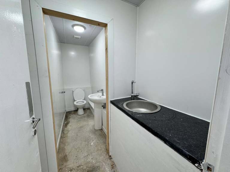 – Toilet and sink at rear