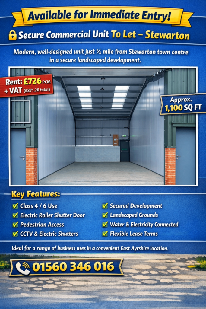 Posting for 6+ yearsCommercial Units for Rent - 1,100sq feet (approx) - Stewarton - Ayrshire