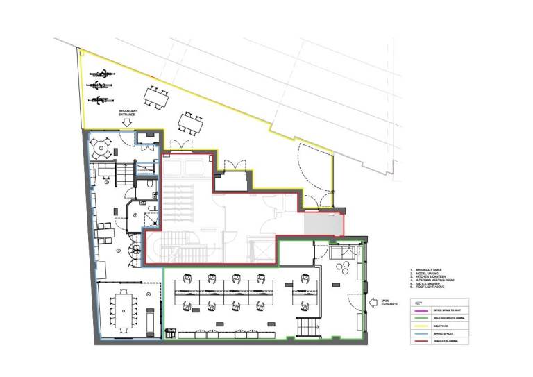 The mezzanine provides exclusive use office space for approximately 10 desks and benefits from a separate side entrance directly to the mezzanine level, creating a private studio environment while still being connected to a vibrant creative workplace below.