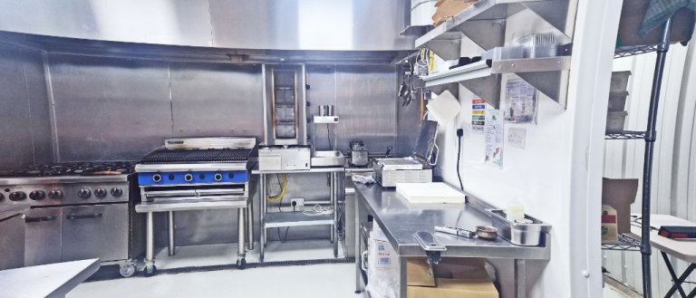 Equipment Excellence: Each kitchen comes equipped with essential apparatus including an Upright Freezer, Free-standing Oven with a six hob burner, Counter top Griddle, Free Standing Fryer Twin Basket, Microwave, Chargrill, and Upright Fridge. We also provide supplementary shared storage options (chilled, ambient, and frozen).