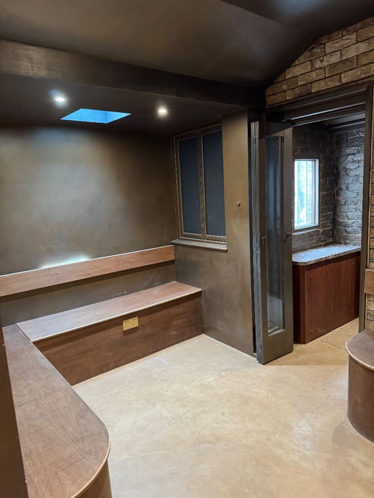 Multiple seating areas to the rear, downstairs and in a private courtyard.