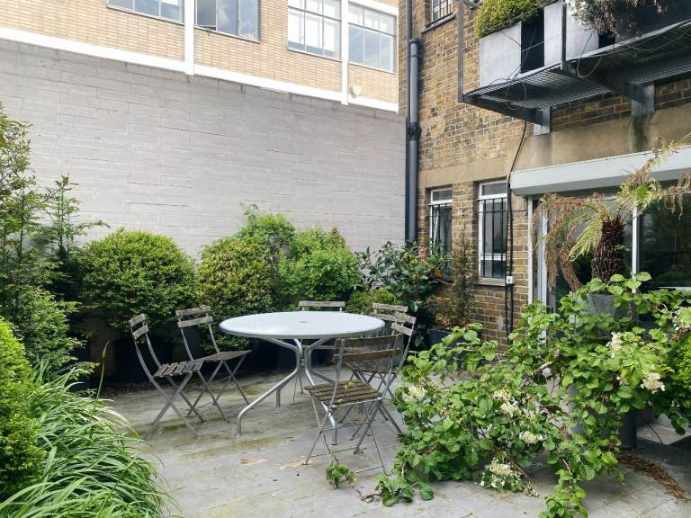Light airy space with high ceilings in purpose-built office space, with outside terrace to the rear.