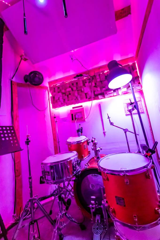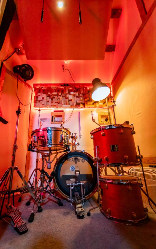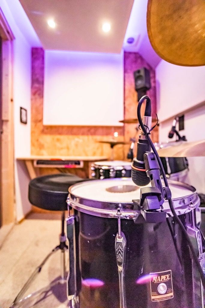 RECORDING BOOTH WITH DRUMT KIT / GUITAR AMP AND MONITORS :