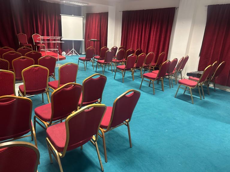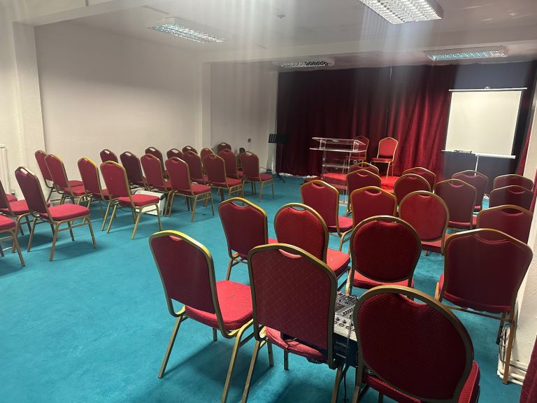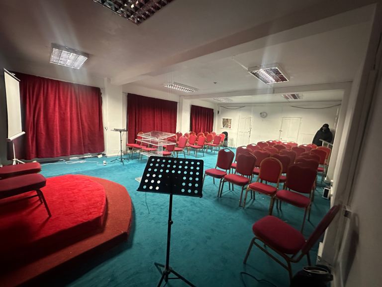 This hall, situated at the heart of East Ham, served by buses and trains, is being advertised for shared use at the cost of £800 per month.