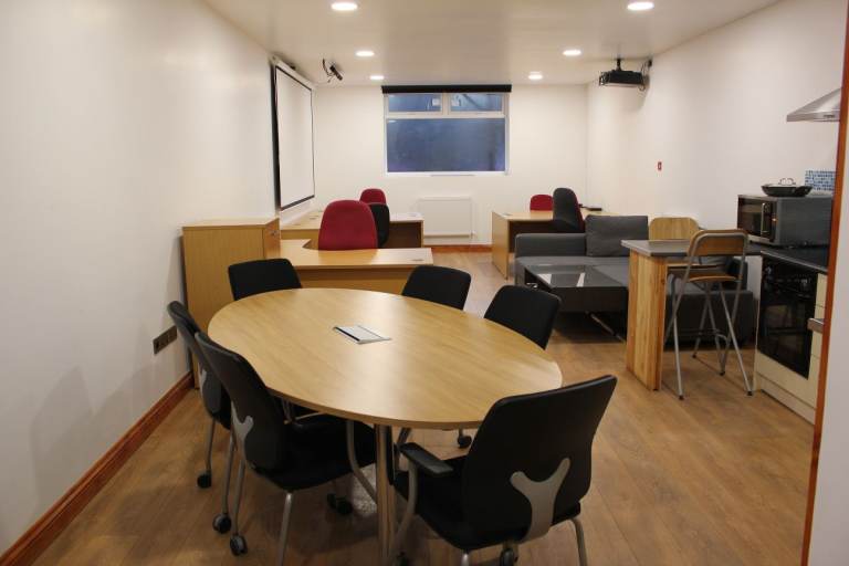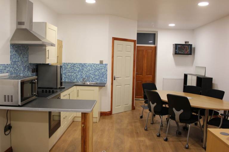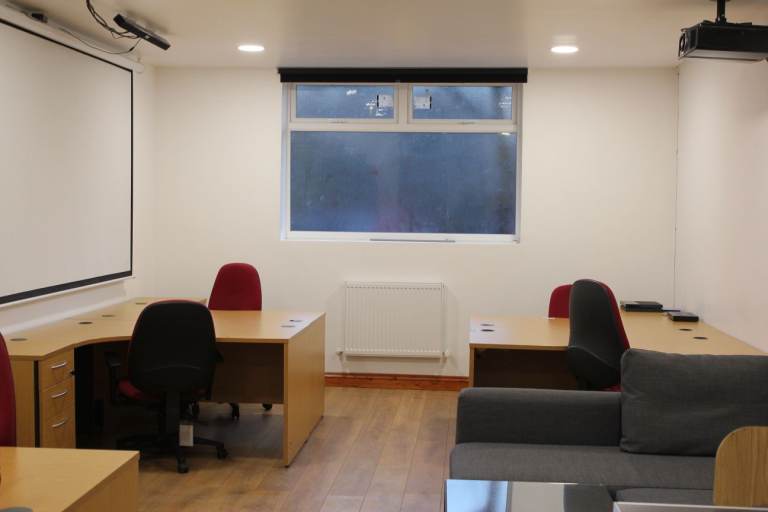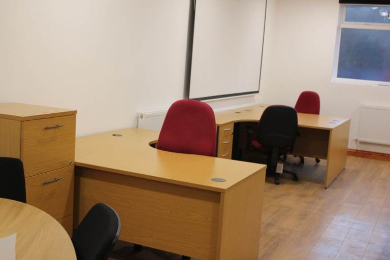 Office 1 - Excellent room with overhead projector and large screen, can accommodate upto 5 desks (3 desks available to use at no extra cost) Boardroom table with chairs available to use with no extra cost) with shower and kitchen area - Heat, Light and Water included.