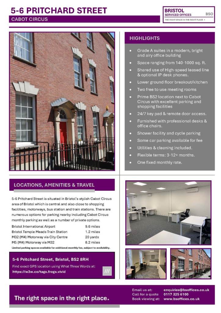CIBC are proud to present these premium quality fully serviced offices in a central location next to Bristol's Cabot Circus. We have an office space available at 650 sq ft (10-12 desk office) which split into two sections on the top floor. Parking available at extra costs.