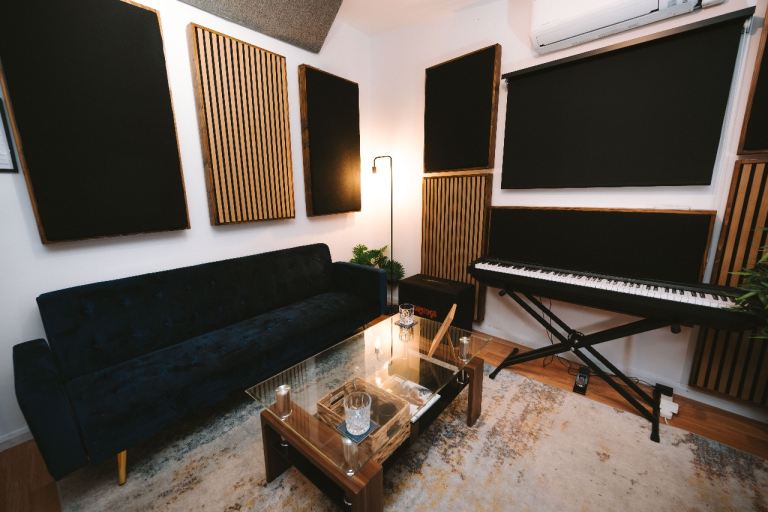 The current space is fairly large, sound treated with pro music equipment for recording. Perfect for a songwriter/producer/artist/band nice who wants a nice environment to work on projects.