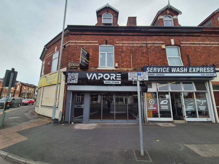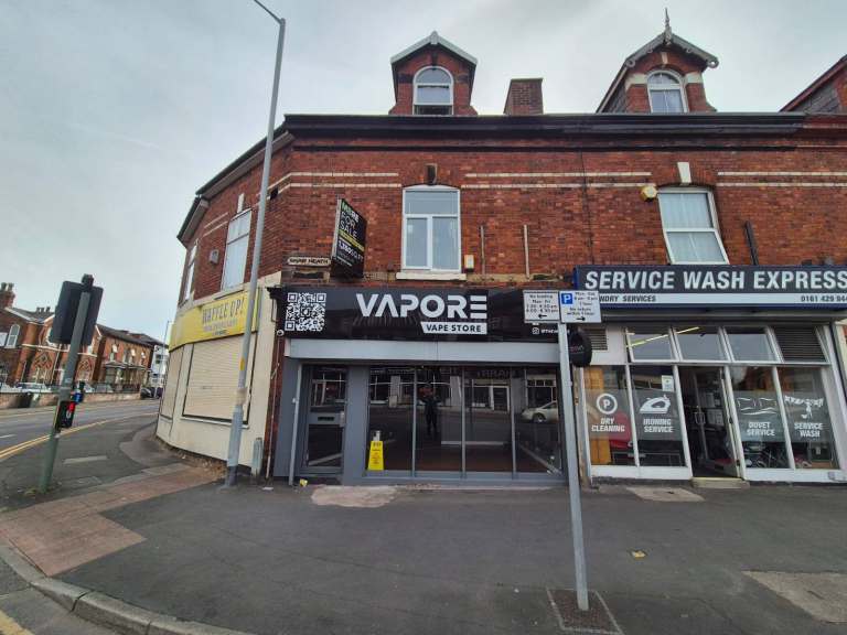 The shop/Office is based on Shaw Heath itself which is 5-min from Stockport city Centre. The shop itself has 2 rooms and a basement, previously utilised as vape rooms. For loading there is easy access from main road. Suitable for most retail businesses or even an offices such as solicitors, dental, private health etc. This shop was once used as vape shop, desert. Toilet/washroom facilities and kitchen as shown in images.