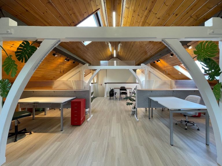 Choose a desk in our bright attic, complete with a communal kitchen, dining space, and lounge for collaboration and connection. Or opt for a private office on the first floor if focus and privacy are more your style.
