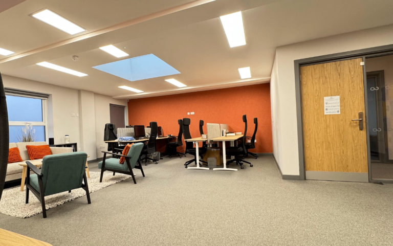 Breakout kitchen, telephone booths, one to one meeting rooms.