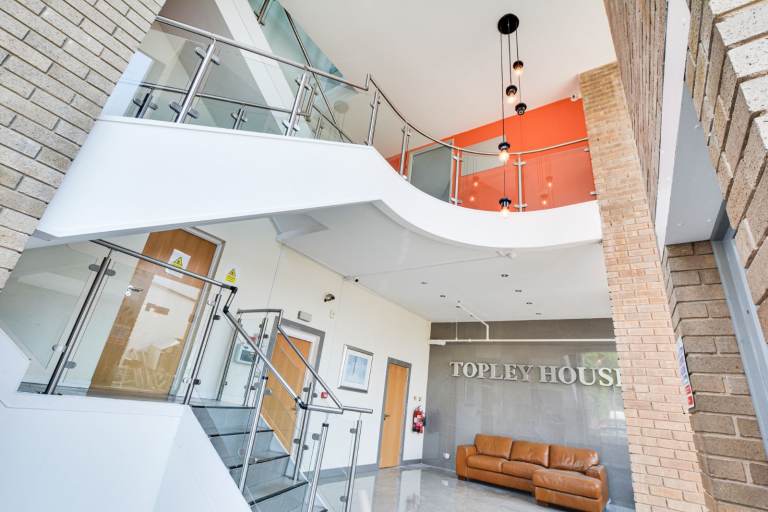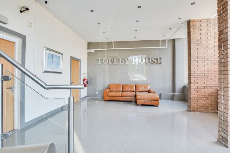 Topley House is an impressive purpose-built office building which boasts an impressive corporate reception area and lift. The top floor suite on offer has been partitioned to provide accommodation by way of variously sized individual rooms within the 2000sqft wing, however these alterations could easily be removed to reinstate the premises to open plan, to suit any suitor' requirements making the suite accessible for all types of businesses. The premises comes complete with a tea-point and self-contained male and female W/C's.