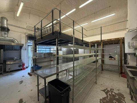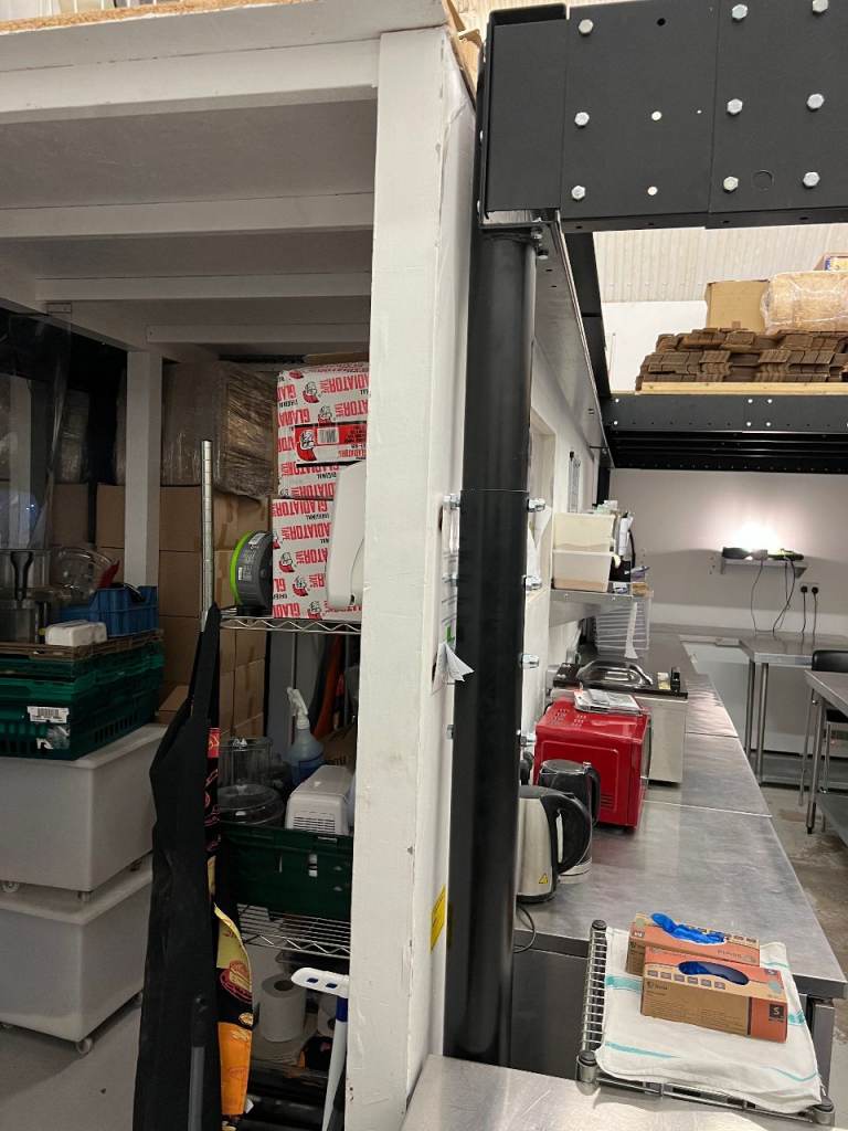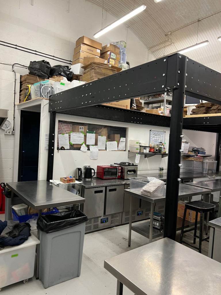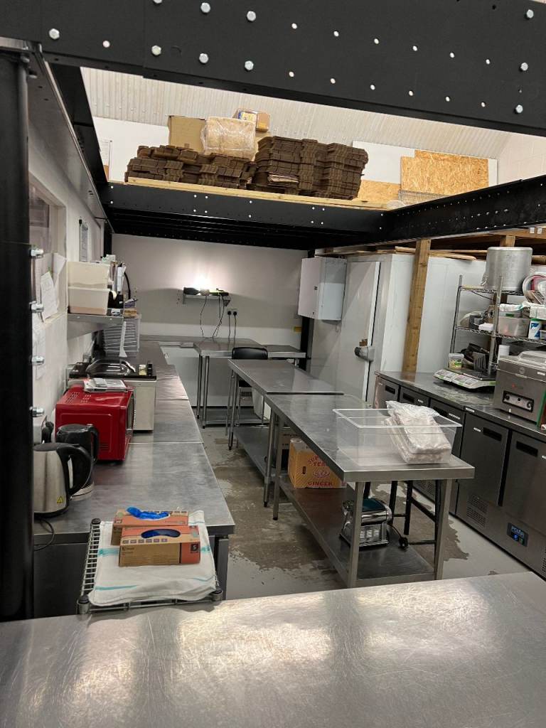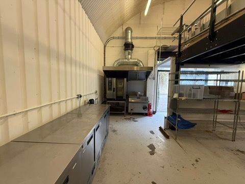 We fitted out this large kitchen space with full 3phase electricity, Large wash area, extraction fan and hood and huge prep and storage area, along with office and large extra mezzanine storage area.