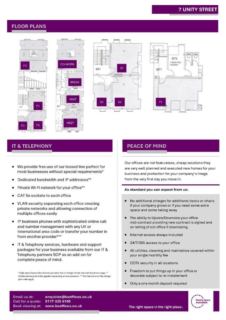 CIBC are proud to offer this prime city centre 4 desk (225 sq ft) fully serviced office space in BS1 at 7 Unity Street.