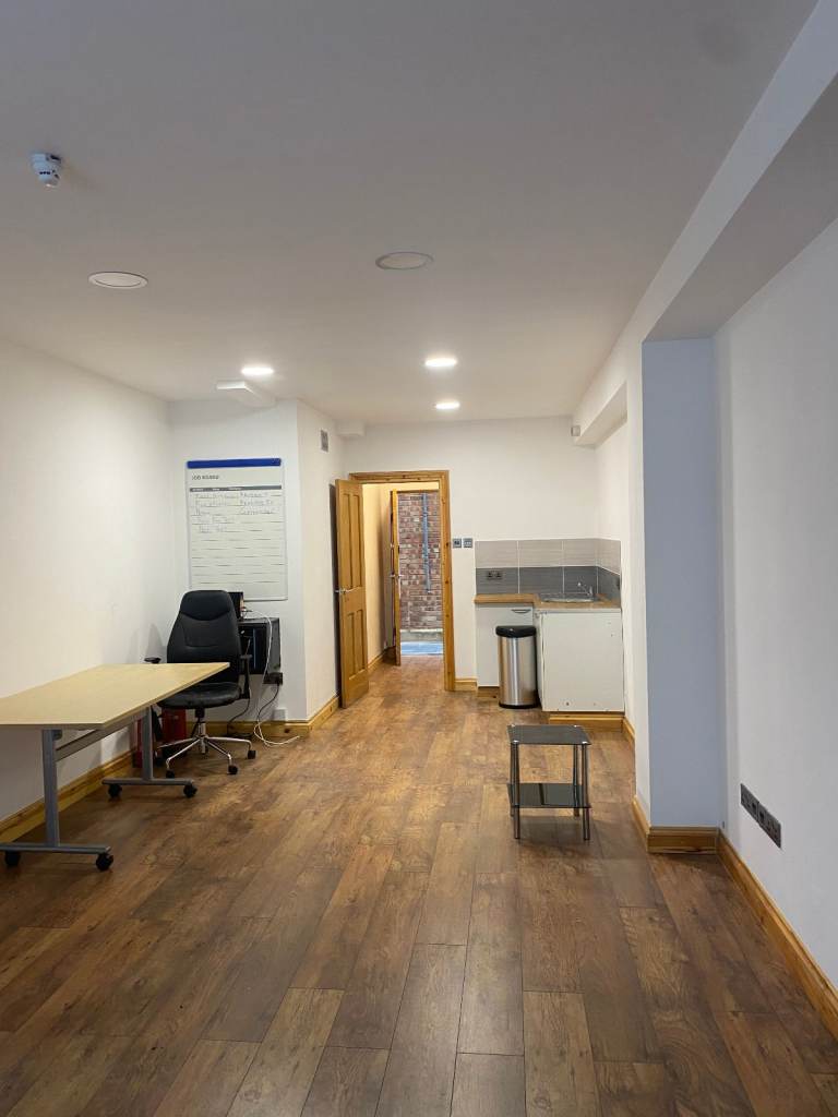 Office 1 - Excellent room with overhead projector and large screen, can accommodate upto 5 desks (3 desks available to use at no extra cost) Boardroom table with chairs available to use with no extra cost) with shower and kitchen area - Heat, Light and Water included.
