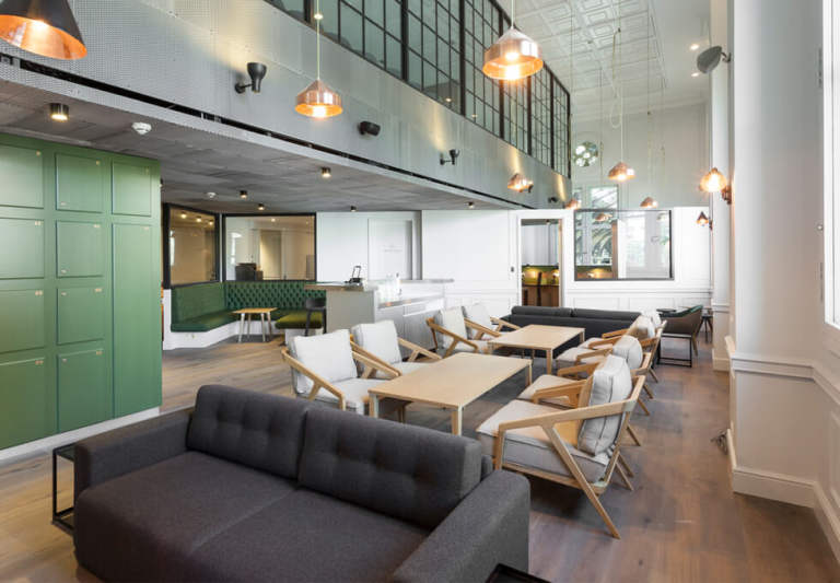 The development in Liverpool Street is classic and contemporary in design due to a combination of copper, steel mesh, stained timber and panelling. The EC2 based building offers meeting rooms tailored to specific types of meetings, both in design and technology, and are available by the hour or the day. Kitchens and dining areas have been provided on each floor, along with shower facilities and an exclusive business lounge.