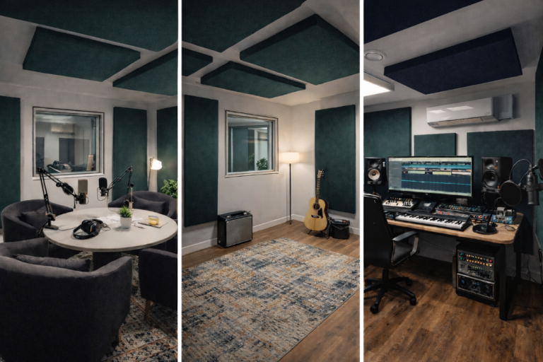 Looking for a premium multi-room studio setup for production, writing, podcasting, vocal recording or full creative teams? This is our only triple studio, a one-of-a-kind space offering three connected rooms designed for creators who want a control room, booth and live room all within a single unit.