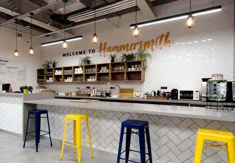 Private offices and coworking desks are available to rent in this Hammersmith property. Facilities include super-fast WiFi, meeting room access, unlimited coffee and 24 hour access.
