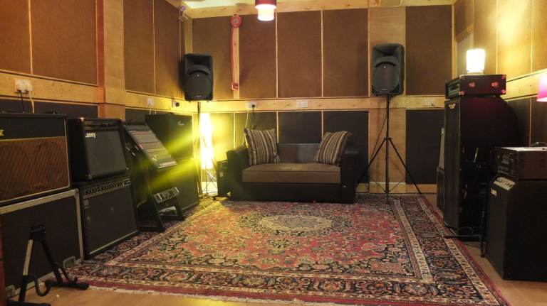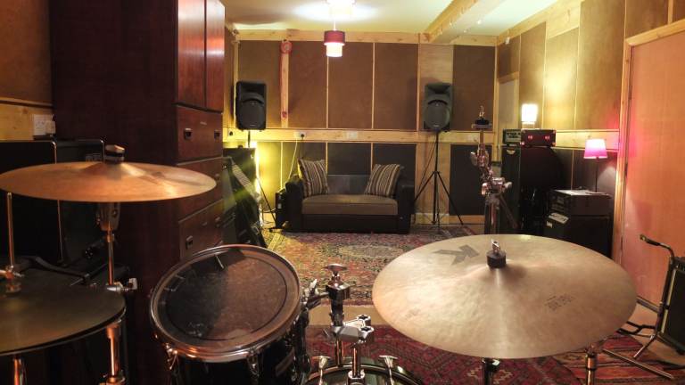 The studio is in industrial estate with no sound restrictions. 800 square ft with control room, live room, vocal booth and internal toilet. Shared access to small kitchen and large bathroom with shower. Free private parking on site.