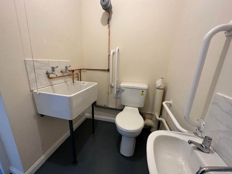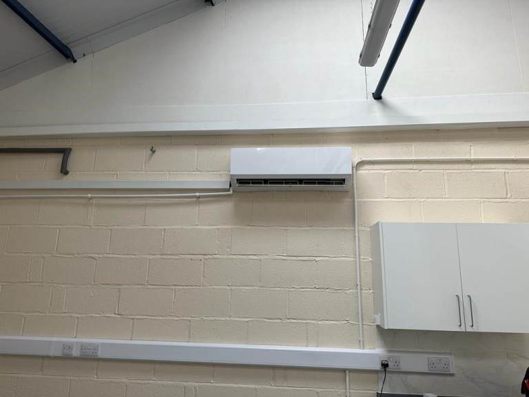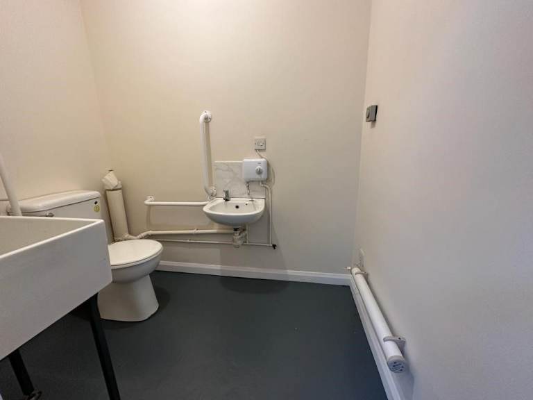 Insulated roof with roof lights, LED lighting, 3 phase electricity. Kitchen area with sink and cupboards, Air to Air heat pump for heating and cooling, W.C with toilet and sink. 1 Parking space