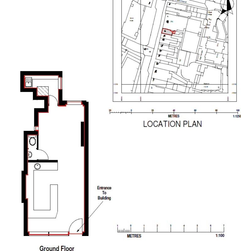 Approximately 500 sqft class E retail unit, with kitchen and bathroom.