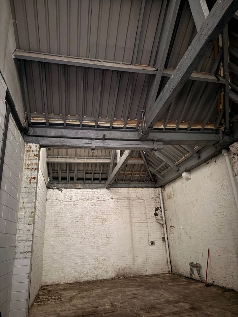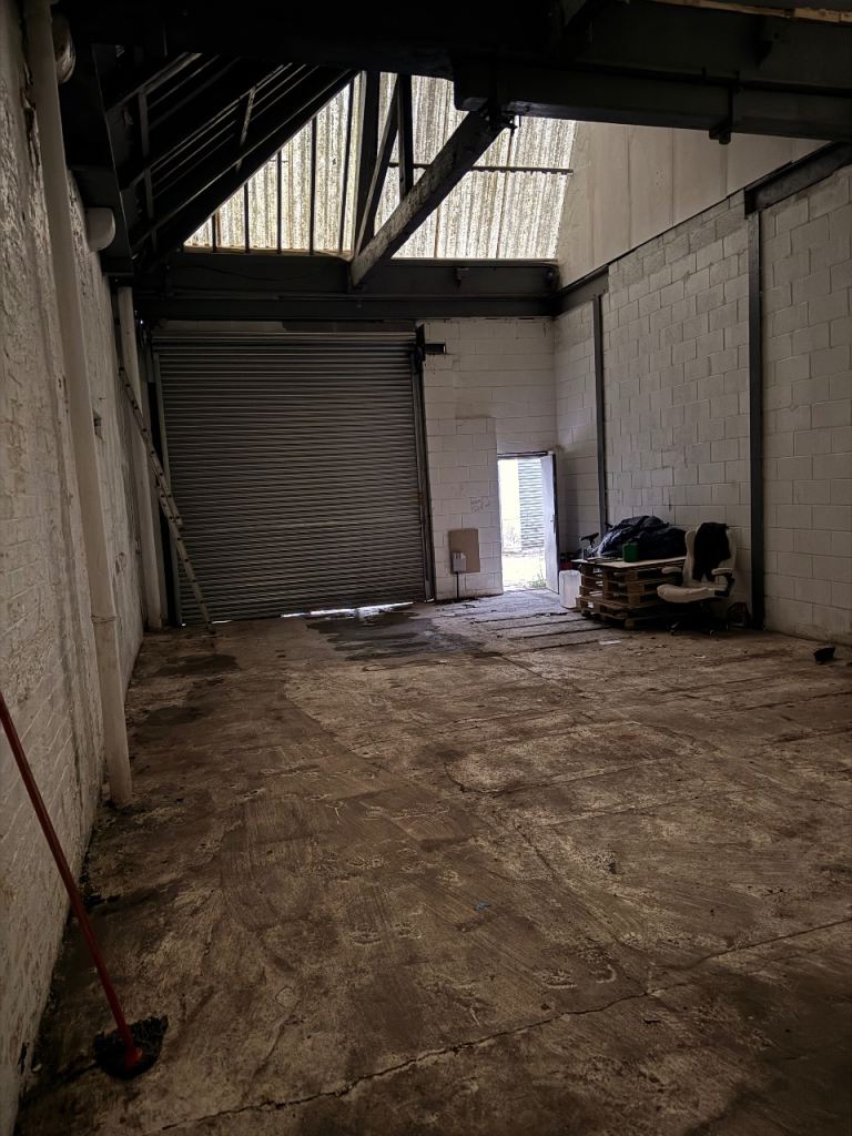 Well-maintained warehouse unit offering a solid, open-plan layout ideal for storage, logistics, or light industrial use. The space features high ceilings with exposed steel beams, providing excellent vertical clearance and ventilation. Strong concrete flooring suitable for heavy loads and equipment.
