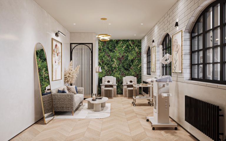 * Renders available show how the studio could be designed for an aesthetics clinic or similar use
