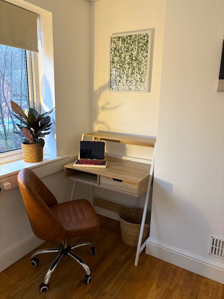 There is a kitchen and toilet inside the cottage and free parking for yourself and clients. Good wifi connection and desk for making online calls.