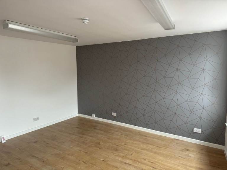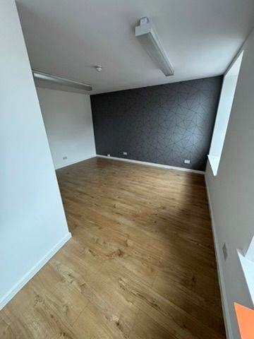 To let are totally refurbished first floor offices/business space in a traditional sandstone building. The property sits at the main four-point crossroads on Larkhall’s main Street (Union St / Church Street) and as such benefits from both a great advertising opportunity and from significant footfall and traffic, whilst stopped at the crossroad lights. Just behind the building there is a large free public car park, which also provides access to Larkhall’s main train station. Its central location is only a short walk to the main shopping areas and all other amenities.
