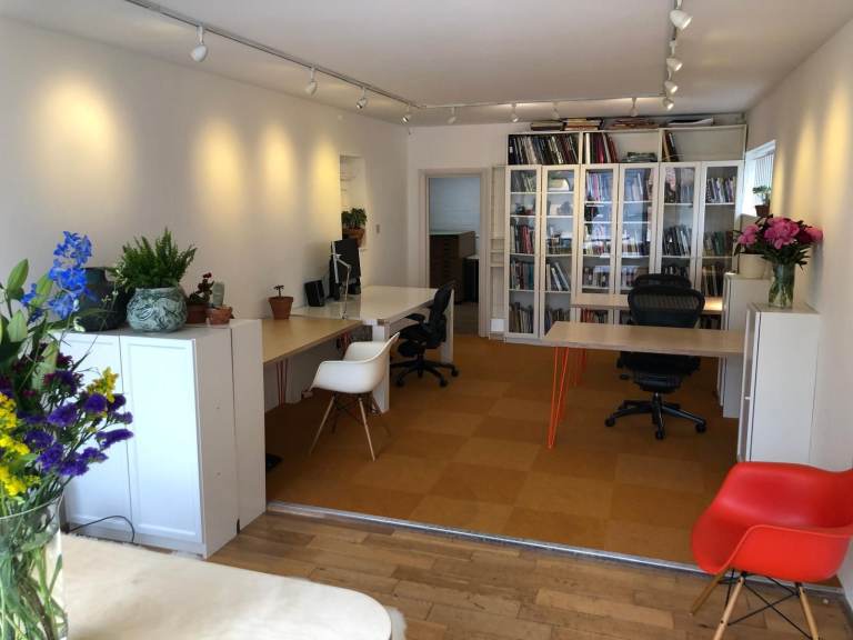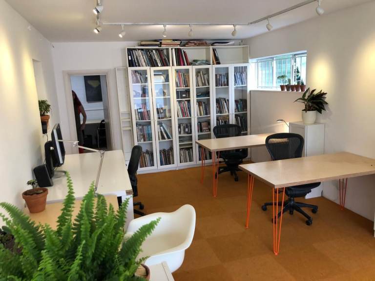 The studio has plenty of daylight and is in good order. We have two-three nice desks available with their own cupboards and some shelf space too.