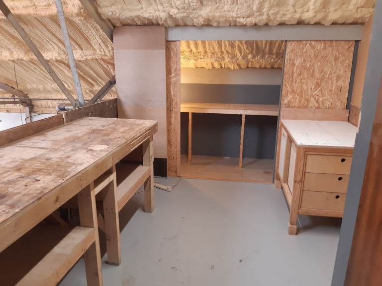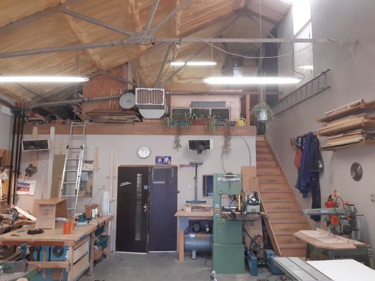 3m2 mezzanine space plus 3x1m storage area in wood workshop, Easton.