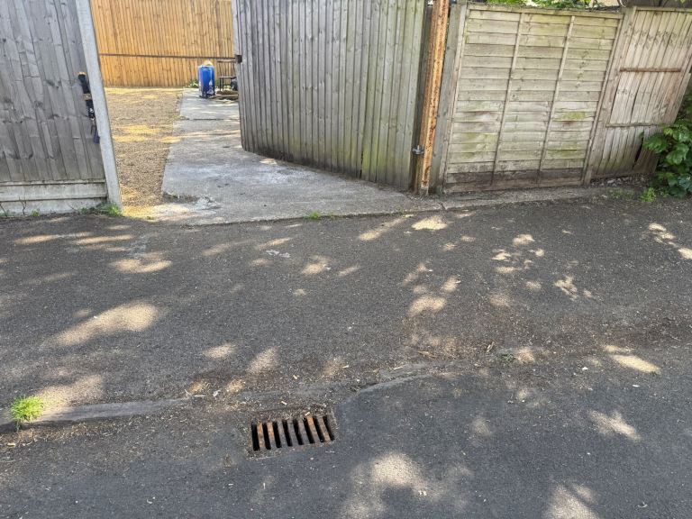 Yard for rent in Ashford Middlesex area close to Heathrow Airport dropped curb secure Gates any uses welcome not car wash site size 11 meters long x 7 meters wide