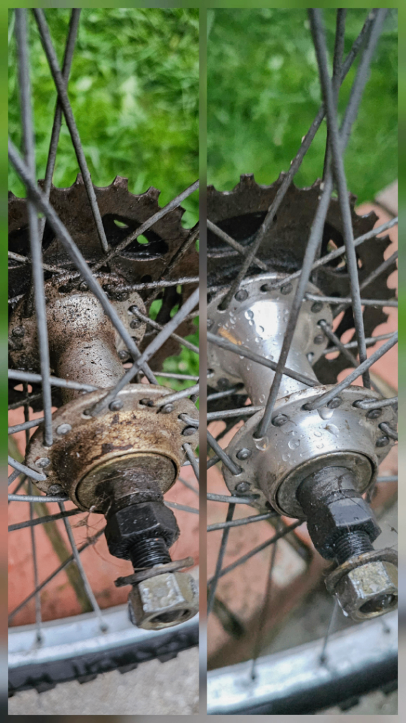 - rear derailleur and chain degreased in ultrasonic bath and de-corroded