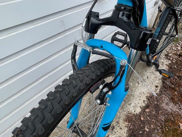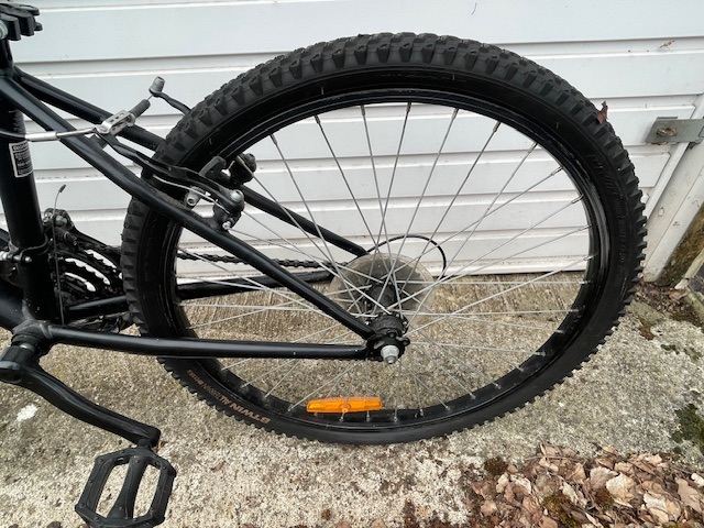 Tires: Wide knobby MTB tires for grip
