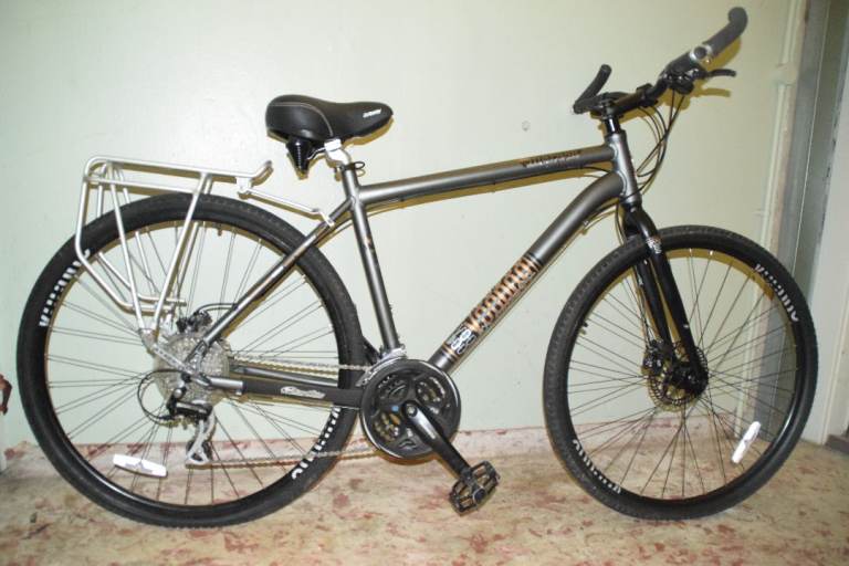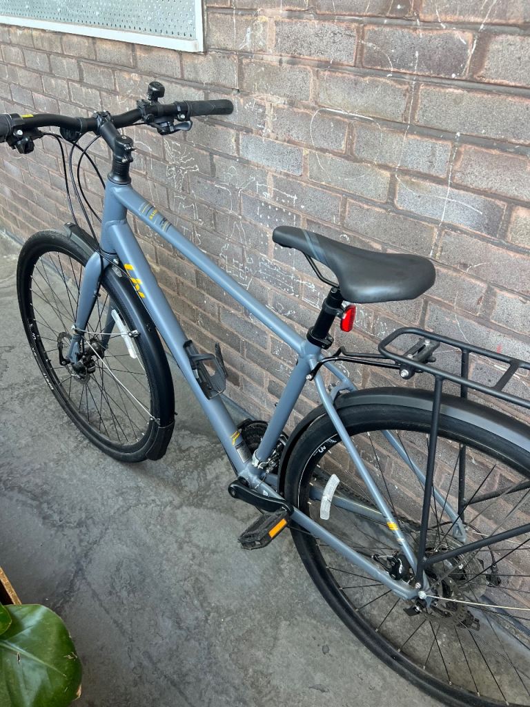 Carrera Crossfire 3 hyrbid bike in a large sized frame. The bike is in excellent condition and ready to ride away. Finished in a lovely sand grey colour.