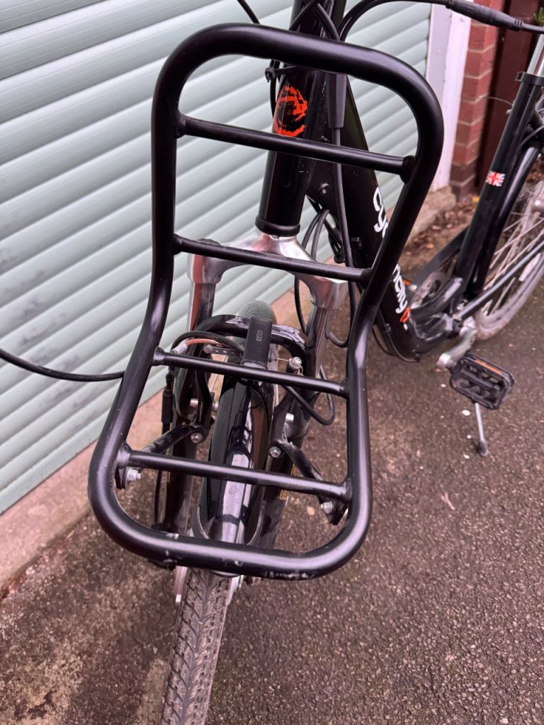 Features a front basket rack and a rear pannier rack for carrying your bits and bobs.