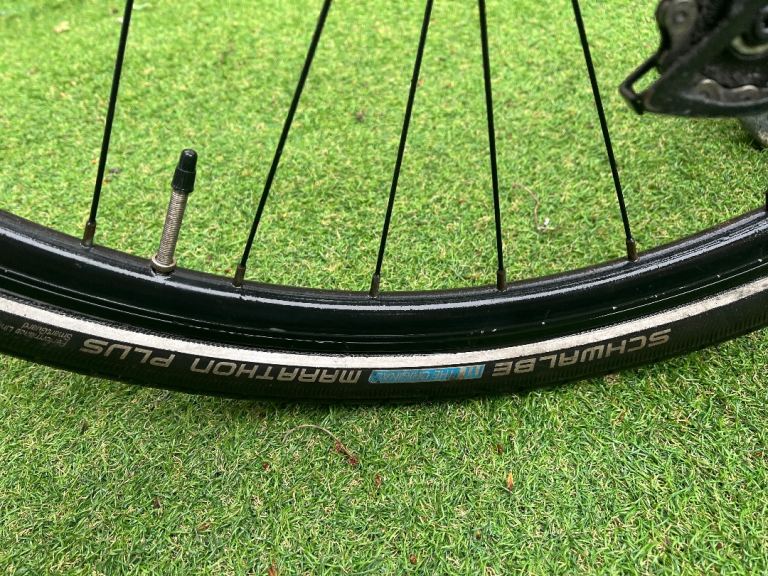 Shimano hydraulic disc brakes, great stopping power in all weather conditions.
