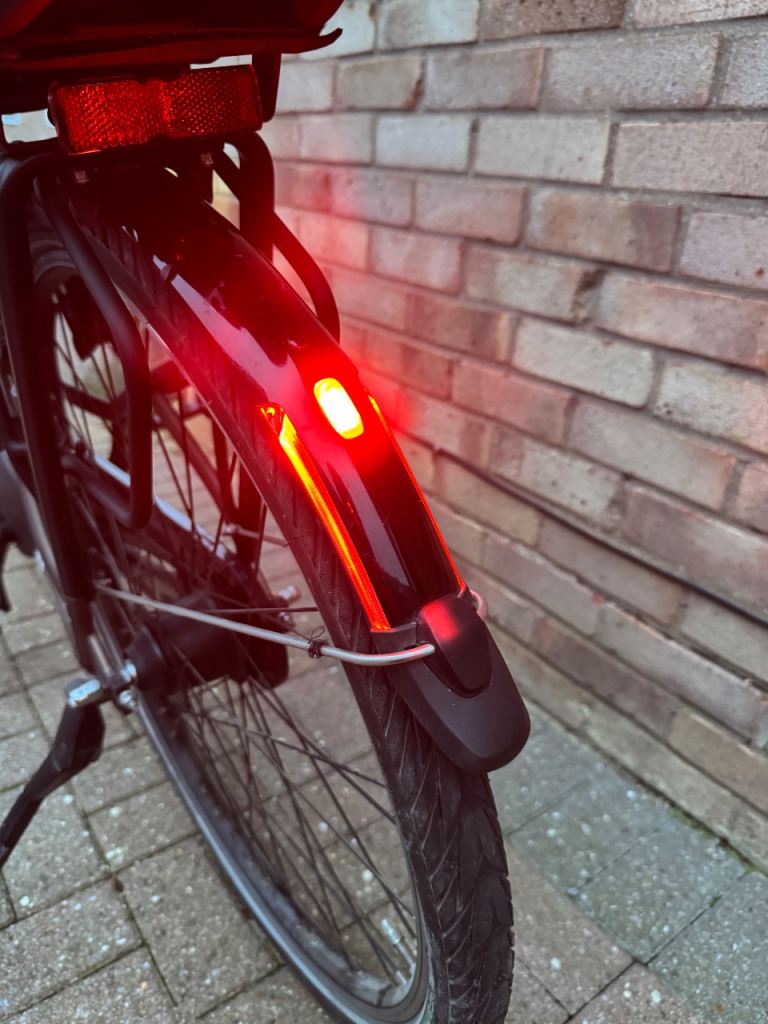 Comes as standard with Magura hydraulic brakes, fitted rear wheel lock and integrated front/rear lights powered from the frame battery.