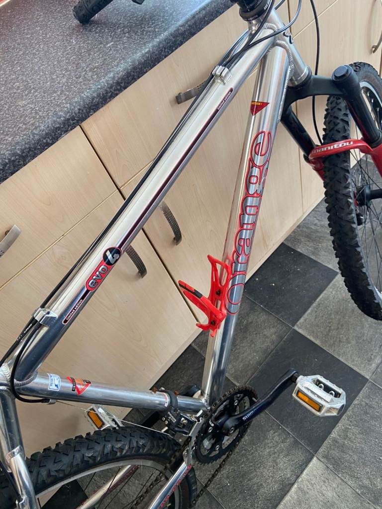 27 speed shimano deore XT,Front Shoeks Hard Tail, Continental Gravity Protec tyres, Twist Gear Shift, 21in Frame, 22in Wheels, Chrome Frame.