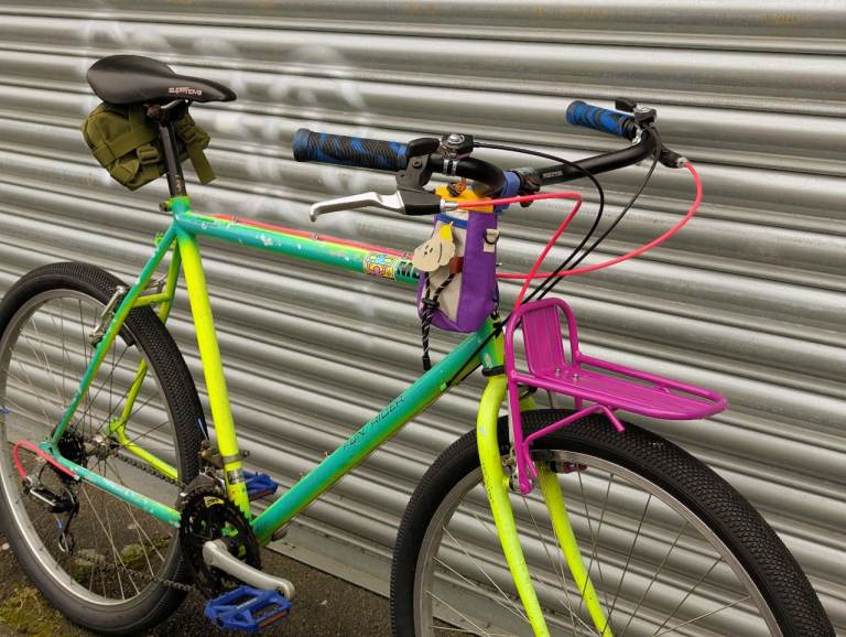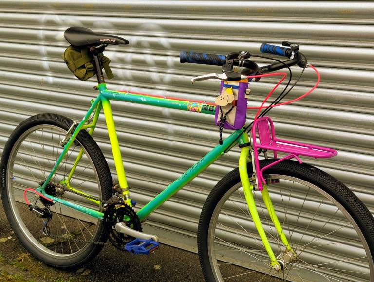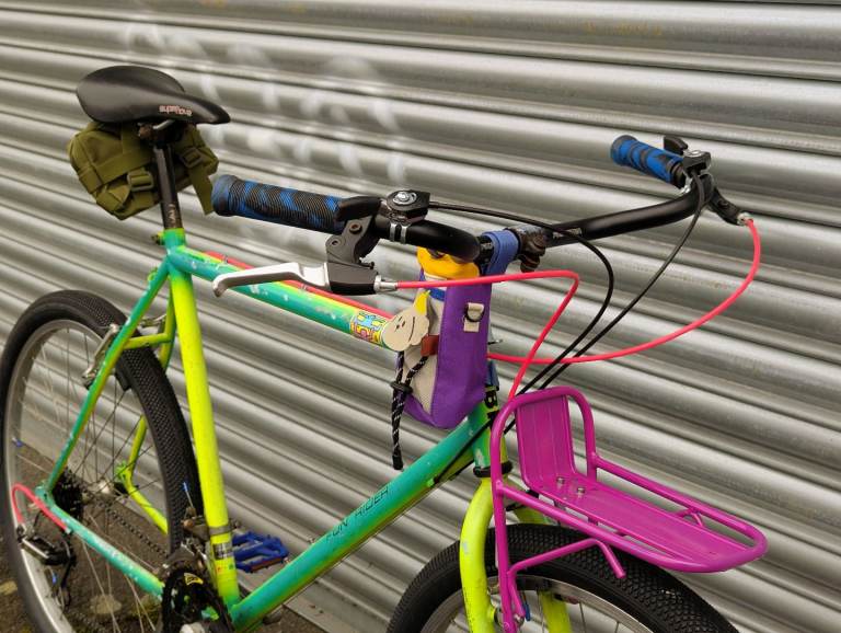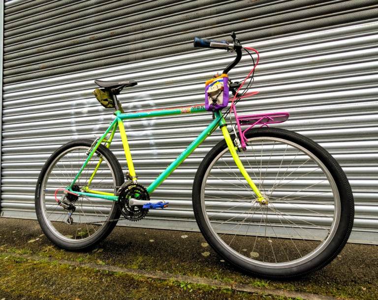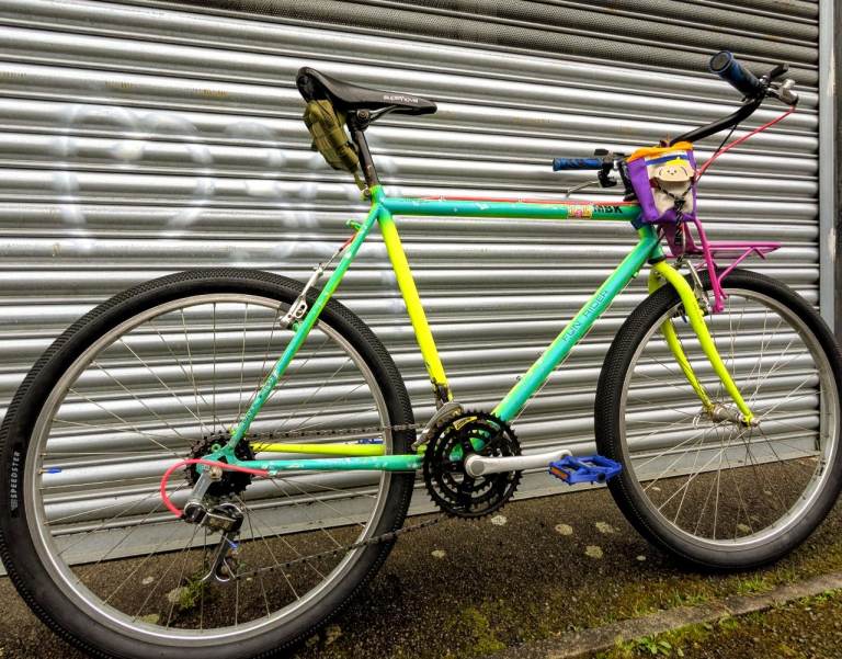 New honeycomb tyres, new Shimano cassette and chain, new handlebars, new shifters, new grips, new cables, new pedals, new stem bag and saddle bag , new front rack