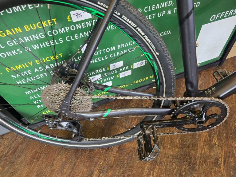 This bike has 700c wheels and 23" frame, so for the taller person!! We have serviced this bike, put new high end puncture protection tyres, new shimano 10 speed deore groupset, new pads, and gave in a good service!!