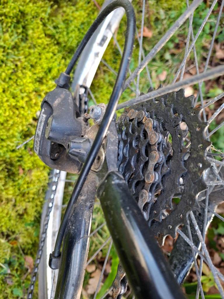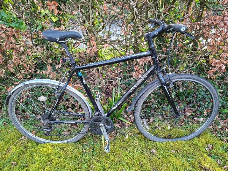 Black Trek bike, 22.5 inch frame, 21 gears. Schwalbe Marathon tyres. Good condition after several years reliable commuting.