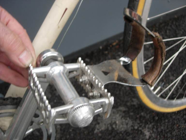 Cast Aluminium Single Crankset, Vintage Style Pedals with Leather Wraped Toe Clips,