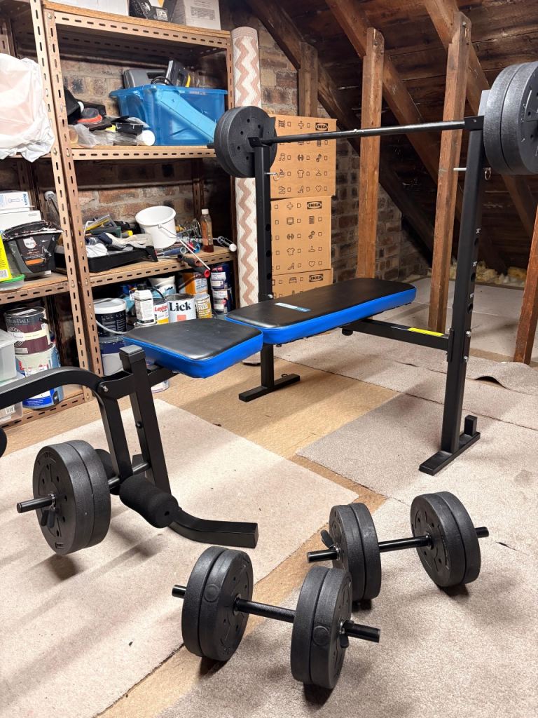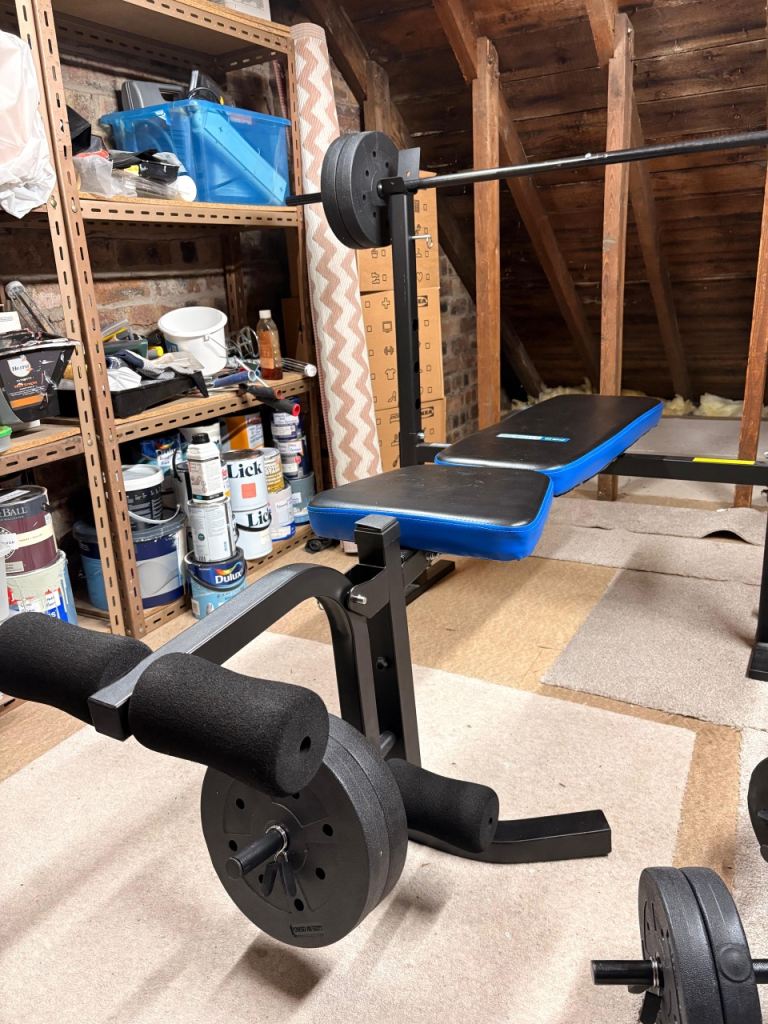 Home multi-gym. Great condition. Similar version on sale in Argos for £125. Check that out if you search Argos and 'Pro Fitness Folding Workout Bench with 50kg Weight Package'. This version doesn't have the 'preacher pad'.